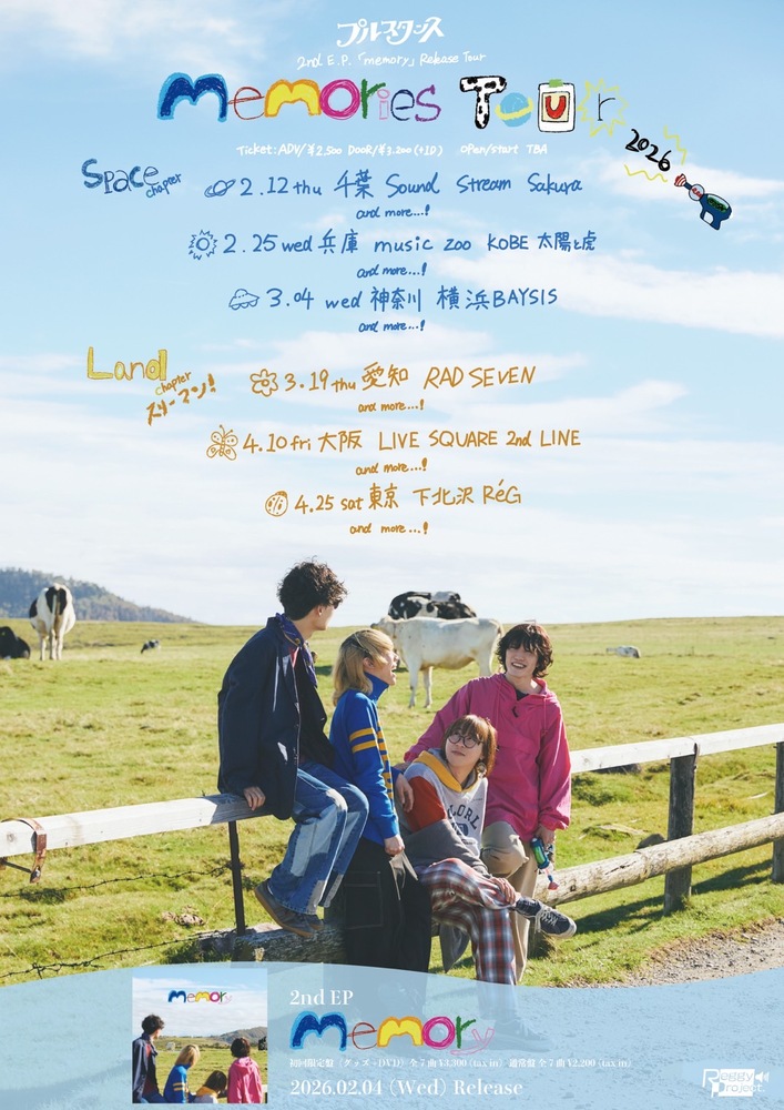 2ndEP「memory」Release Tour "memories Tour" Space編 神戸公演 SCHEDULE 2026/02/25(水) music zoo KOBE 太陽と虎 OPEN / START 未定 TICKET 手売りチケット,一般 ¥2,500- / 当日 ¥3,000 (1D別) 詳細は後日発表! チケット予約はこちら URLをコピーする 報告する